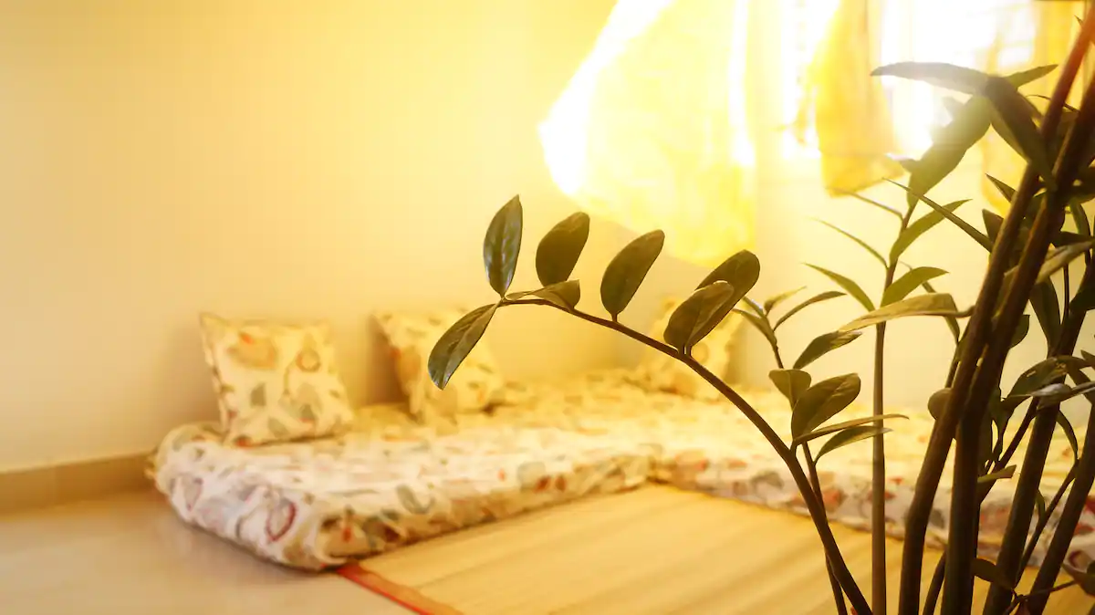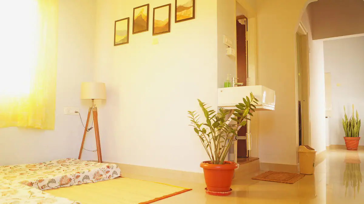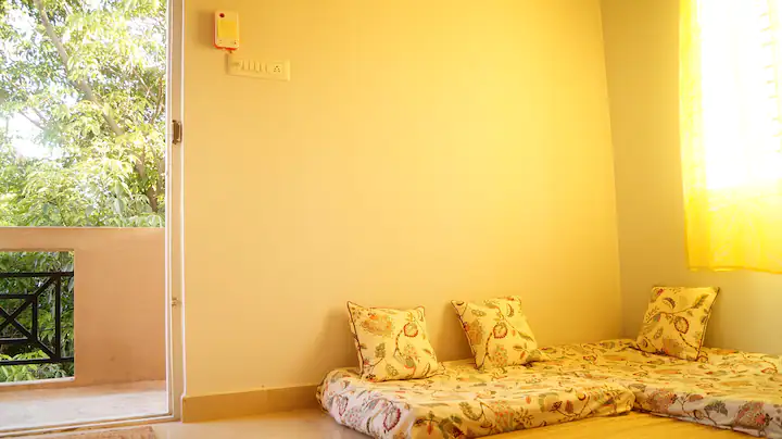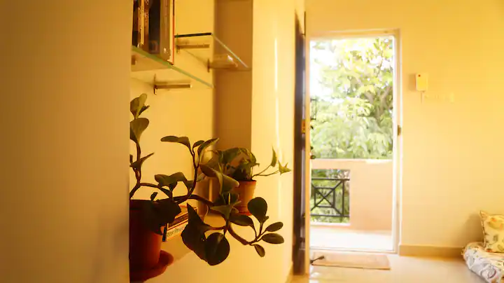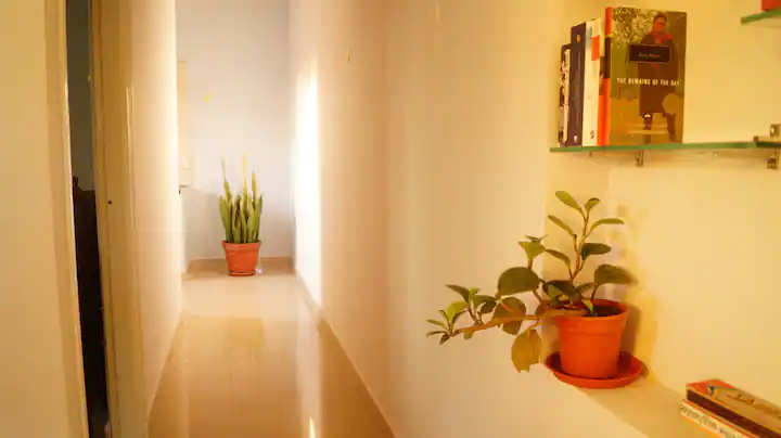 Enjoy the serene atmosphere of Bengaluru with birds chirping in the evenings and trees around the home. You will be located on the third floor with a lot of potted flowering plants with privacy and a balcony.